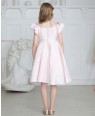 | 描述 | 这是一件优雅时尚,可用于正式场合的公主裙。主要由粉色提花做成,这条裙腰部打褶肩部是落肩设计,在缎面下裙子有着丰富的薄纱层配上缎面的内衬里面是柔软的棉纱,裙长到小腿处,背部有一个拉链。这款粉色色花朵长裙对各种身材具有强烈的包容性,版型提升腰线使人显得修长,展示儿童身资可爱的一面。 |
